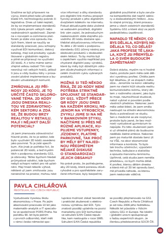 Sna%u017e%u00edme se b%u00fdt p%u0159ipraveni na v%u00fdzvy, kter%u00e9 p%u0159ed na%u0161e u%u017eivatele klade trh, technologick%u00fd pokrok %u010di legislativa. Dnes u%u017e tak%u00e9 neplat%u00ed, %u017ee by se implementace standard%u016f GS1 t%u00fdkala jenom velk%u00fdch nebo nadn%u00e1rodn%u00edch spole%u010dnost%u00ed. Zejm%u00e9na s rozvojem e-commerce platforem je st%u00e1le v%u00edce opravdu mal%u00fdch firem, kter%u00e9 se nau%u010dily se standardy pracovat, jsou schopny vyu%u017e%u00edvat EDI komunikaci, datov%u00fd katalog, maj%u00ed sv%u00e9 produkty vypublikovan%u00e9 v glob%u00e1ln%u00edm registrua piln%u011b se p%u0159ipravuj%u00ed na vyu%u017e%u00edv%u00e1n%u00ed 2D k%u00f3d%u016f. A z toho m%u00e1me samoz%u0159ejm%u011b velkou radost! T%u00edm nijak nesni%u017euji roli velk%u00fdch hr%u00e1%u010d%u016f, jeliko%u017e ti jsou a v%u017edy budou l%u00eddry v prosazov%u00e1n%u00ed plo%u0161n%u00e9 implementace a budov%u00e1n%u00ed u%u017eivatelsk%u00fdch komunit. ZMI%u0147OVALA JSI P%u0158%u00cdNOSY 2D K%u00d3D%u016e, JE TO UR%u010cIT%u011a %u010cASTO SKLO%u0147OVAN%u00c9 T%u00c9MA. 2D K%u00d3DY JSOU DNESKA REALITOU VE ZDRAVOTNICK%u00c9M SEKTORU A ZD%u00c1 SE, %u017dE BUDOU BRZY REALITOU V RETAILU.MAJ%u00cd I N%u011aJAK%u00dd DAL%u0160%u00cd POTENCI%u00c1L?J%u00e1 jsem jmenovala zdravotnictv%u00ed hlavn%u011b proto, %u017ee to je sektor, kde bylo vyu%u017e%u00edv%u00e1n%u00ed 2D k%u00f3d%u016f zavedeno jako povinn%u00e9. To je jist%u00e9 specifikum. Ale jinak je pot%u0159eba %u0159%u00edct, %u017ee potenci%u00e1l 2D k%u00f3d%u016f, a te%u010f mysl%u00edm t%u011bch s podporou standardu GS1, je obrovsk%u00fd. T%u011b%u017eko bychom hledali pr%u016fmyslov%u00e9 odv%u011btv%u00ed, kde bychom nebyli schopni nal%u00e9zt pro n%u011b uplatn%u011bn%u00ed. Maj%u00ed hned n%u011bkolik v%u00fdhod, n%u011bkter%u00e9 u%u017e jsem zmi%u0148ovala: jsou nen%u00e1ro%u010dn%u00e9 na prostor, mohou n%u00e9st v%u00edce informac%u00ed a d%u00edky standardu pro digit%u00e1ln%u00ed link mohou propojit fyzick%u00fd produkt s jeho digit%u00e1ln%u00edm dvoj%u010detem kdekoliv na internetu. Pokud aktualizujete data ulo%u017een%u00e1 ve webov%u00e9m prost%u0159ed%u00ed, digit%u00e1ln%u00ed link v%u00e1m zajist%u00ed, %u017ee jednoduch%u00fdm naskenov%u00e1n%u00edm st%u00e1le stejn%u00e9ho p%u016fvodn%u00edho 2D k%u00f3du dostane spot%u0159ebitel aktualizovanou informaci. To d%u011bl%u00e1 z 2D k%u00f3d%u016f s podporou standardu GS1 %u00fa%u010dinn%u00fd n%u00e1stroj pro sledov%u00e1n%u00ed produkt%u016f v dodavatelsk%u00e9m %u0159et%u011bzci. To by mohlo b%u00fdts %u00fasp%u011bchem vyu%u017eito nap%u0159%u00edklad pro chystan%u00e9 digit%u00e1ln%u00ed pasy v%u00fdrobk%u016f,kter%u00e9 by m%u011bly b%u00fdt d%u016fle%u017eit%u00fdm zdrojem d%u016fv%u011bryhodn%u00fdch informac%u00ed o cel%u00e9m %u017eivotn%u00edm cyklu vybran%u00fdch produkt%u016f.MO%u017dN%u00c1 SI TE%u010e N%u011aKDO %u0158%u00cdK%u00c1, %u017dE 2D K%u00d3DY NEN%u00cd POT%u0158EBA STRIKTN%u011a SPOJOVAT SE STANDARDY GS1. V%u017dDY%u0164 P%u0158ECE QR K%u00d3DY JSOU DNES NA KA%u017dD%u00c9M KROKU, NEJENOM NA V%u00ddROBC%u00cdCH. ZVYKLI JSME SI NA N%u011a V BANKOVN%u00cdM STYKU, NA%u010c%u00cdT%u00c1ME SI P%u0158ES N%u011a R%u016eZN%u00c9 APLIKACE, KUPUJEME VSTUPENKY, J%u00cdZDENKY, PLAT%u00cdME PARKOVN%u00c9, TAK PRO%u010c BY M%u011aLY B%u00ddT NAJEDNOU P%u0158EDM%u011aTEMN%u011aJAK%u00c9 DISKUSEO STANDARDIZACI JEJICH OBSAHU?No pr%u00e1v%u011b proto, %u017ee pot%u0159ebujeme, aby 2D k%u00f3dy, kter%u00e9 ponesou d%u016fv%u011bryhodn%u00e9 a pro spot%u0159ebitele zaru%u010den%u00e9 informace, byly bezpe%u010dn%u00e9, glob%u00e1ln%u011b pou%u017eiteln%u00e9 a byla zaru%u010dena kompatibilita dat nap%u0159%u00ed%u010d sektory a dodavatelsk%u00fdmi %u0159et%u011bzci. Jsou to stejn%u00e9 principy, kter%u00e9 prosazujeme u v%u0161ech ostatn%u00edch standard%u016f Syst%u00e9mu GS1 a kter%u00e9 stoj%u00ed za jejich pades%u00e1tiletou %u00fasp%u011b%u0161nost%u00ed.NAPADLO T%u011a N%u011aKDY, CO BYS D%u011aLALA, KDYBYS NED%u011aLALA TO, CO D%u011aL%u00c1%u0160? JAK%u00c1 PROFESE T%u011a L%u00c1KALA, KDY%u017d JSI P%u0158EM%u00dd%u0160LELA O SV%u00c9M BUDOUC%u00cdM ZAM%u011aSTN%u00c1N%u00cd?Dobr%u00e1 ot%u00e1zka, mysl%u00edm na ni hodn%u011b %u010dasto, proto%u017ee jsem m%u011bla cel%u00e9 d%u011btstv%u00ed vysn%u011bnou profesi. Cht%u011bla jsem b%u00fdt l%u00e9ka%u0159kou, j%u00edt ve stop%u00e1ch m%u00e9ho otce%u2026 Jenom%u017ee na konci z%u00e1kladky jsem na vlastn%u00ed k%u016f%u017ei okusila realitu komunistick%u00e9ho re%u017eimu, kter%u00fd d%u011btem z rodinn%u00e9ho z%u00e1zem%u00ed, jako bylo to moje, neumo%u017e%u0148oval studovat, nato%u017e vyb%u00edrat si povol%u00e1n%u00ed podle vlastn%u00edch p%u0159edstav. Nakonec jsem m%u011bla velk%u00e9 %u0161t%u011bst%u00ed, %u017ee jsem sm%u011bla nastoupit na st%u0159edn%u00ed ekonomickou%u0161kolu a pokra%u010dovat ve studiu. Sen o medic%u00edn%u011b se ale rozplynul, proto%u017ee bylo jasn%u00e9, %u017ee bez mo%u017enosti vystudovat gymn%u00e1zium to nep%u016fjde. Po t%u00e9to zku%u0161enosti jsem si u%u017e ohledn%u011b pl%u00e1n%u016f do budoucna ned%u011blala %u017e%u00e1dn%u00e9 ambice. Nakonec jsem po maturit%u011b dostala %u0161anci j%u00edt na V%u0160E, na obor ekonomick%u00e9informace a kontrola. To bylo tak trochu %u00fa%u010detnictv%u00ed, v%u00fdpo%u010detn%u00ed technika, kalkulace a statistika a spousta marxismu-leninismu. Up%u0159%u00edmn%u011b, cel%u00e1 studia jsem nem%u011bla p%u0159edstavu, co bych mohla d%u011blat.K profesi, kterou d%u011bl%u00e1m dneskaa kter%u00e1 m%u011b u%u017e 30 let opravdu bav%u00ed, m%u011b p%u0159ivedla n%u00e1hoda, za kterou jsem neskonale vd%u011b%u010dn%u00e1.Vystudovala Vysokou %u0161kolu ekonomickou v Praze. Po jej%u00edm absolvov%u00e1n%u00ed pracovala 10 let jako matematik%u2013analytik a IT specialista ve spole%u010dnosti PORS Praha. Na po%u010d%u00e1tku 90. let byla jedn%u00edmz prvn%u00edch odborn%u00edk%u016f, kte%u0159%u00