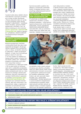 Vysok%u00e1 kvalita dat je dal%u0161%u00edm siln%u00fdm motiv%u00e1torem a jak bylo ji%u017e %u0159e%u010deno, pro e-shop to plat%u00ed dvojn%u00e1sob. %u201eP%u0159esn%u00e1 relevantn%u00ed data od v%u00fdrobce n%u00e1m pom%u00e1haj%u00ed sn%u00e1ze dostat produkt k z%u00e1kazn%u00edk%u016fm,%u201c vysv%u011btluje Adam Koudela, v%u00fdkonn%u00fd %u0159editel spole%u010dnosti LAVONIO s t%u00edm, %u017ee datov%u00fd katalog pro n%u011bj znamen%u00e1 garanci spr%u00e1vnosti a %u00faplnosti B2B a hlavn%u011b B2C dat, kter%u00e1 si nakupuj%u00edc%u00ed vyhled%u00e1vaj%u00ed, v%u010detn%u011b kvalitn%u00edch standardizovan%u00fdch fotografi%u00eda popis%u016f.Rodinn%u00e1 spole%u010dnost LAVONIO vznikla p%u0159ed t%u0159iceti lety jako mal%u00e1 region%u00e1ln%u00ed s%u00ed%u0165 drogeri%u00ed. Druh%u00e1 generace majitel%u016f firmu transformovala v e-shop, ze kter%u00e9ho obsluhuje z%u00e1kazn%u00edky v sedmi evropsk%u00fdch st%u00e1tech. A roste. Do t%u0159%u00ed let pl%u00e1nuje pokryt%u00ed v%u0161ech 27 zem%u00ed EU. V on-line vod%u00e1ch se %u00fasp%u011b%u0161n%u011b pohybuje t%u0159et%u00edm rokem a mo%u017eno %u0159%u00edci, %u017ee chytila %u201edobr%u00fd v%u00edtr%u201c. Kategorie drogerie a kosmetiky toti%u017e pat%u0159%u00ed mezi nejrychleji rostouc%u00edv e-commerce a z celkov%u00fdch tr%u017eebv %u010cR na ja%u0159e tvo%u0159ily ji%u017e %u00factyhodn%u00fdch 10 % z ve%u0161ker%u00e9ho prodan%u00e9ho zbo%u017e%u00ed. Digitalizace proces%u016f v%u010detn%u011b sd%u00edlen%u00ed produktov%u00fdch dat se v t%u00e9to expanzivn%u00ed strategii uk%u00e1zala jako nezbytn%u00e1. Mocn%u00fdm impulzem pro zaveden%u00ed GDSN p%u0159itom zap%u016fsobila pot%u0159eba automatick%u00e9ho sb%u011bru a zpracov%u00e1n%u00ed specifick%u00fdch dattypick%u00fdch pro sortiment dom%u00e1c%u00ed chemie, jako jsou informace o nebezpe%u010dnosti, %u00fadaje o registrac%u00edch produkt%u016f na konkr%u00e9tn%u00edch trz%u00edch nebo data v r%u00e1mci tzv. Glob%u00e1ln%u011b harmonizovan%u00e9ho syst%u00e9mu klasifikace a ozna%u010dov%u00e1n%u00ed chemik%u00e1li%u00ed (GHS). E-katalog Synfony nav%u00edc umo%u017e%u0148uje sd%u00edlen%u00ed bezpe%u010dnostn%u00edch list%u016f ve form%u011b PDF.P%u0159i p%u0159echodu na GDSN p%u0159ed spole%u010dnost%u00ed LAVONIO vyvstala ne%u010dekan%u00e1 p%u0159ek%u00e1%u017eka %u2013 n%u00edzk%u00e1 technologick%u00e1 p%u0159ipravenost ur%u010dit%u00e9 skupiny dodavatel%u016f. Trochu paradoxn%u011b, nebo%u0165 pr%u00e1v%u011b dodavatel%u00e9 b%u00fdvaj%u00ed zpravidla t%u011bmi, kdo po centralizovan%u00e9m %u0159e%u0161en%u00ed pro sd%u00edlen%u00ed dat vol%u00e1 nejsiln%u011bji. Vkl%u00e1d%u00e1n%u00ed kmenov%u00fdch dat do jedin%u00e9ho m%u00edsta a jejich p%u0159%u00edpadn%u00e9 %u00fapravy pro v%u0161echny u%u017eivatele nar%u00e1z jim u%u0161et%u0159%u00ed stovky hodin ro%u010dn%u011b administrativn%u00ed %u010dinnosti ve srovn%u00e1n%u00ed s vypl%u0148ov%u00e1n%u00edm zalistovac%u00edch karet pro ka%u017ed%u00e9ho odb%u011bratele zvl%u00e1%u0161%u0165. Ov%u0161em, jak n%u00e1m prozradil Adam Koudela, jsou %u201edodavatel%u00e9a dodavatel%u00e9%u201c. Existuj%u00ed spole%u010dnosti s vysoce kvalitn%u00edmi drogistick%u00fdmia kosmetick%u00fdmi produkty, kter%u00e9 v%u0161ak bohu%u017eel necht%u011bj%u00ed vykro%u010dit ze zajet%u00fdch kolej%u00ed a vrcholem digitalizace je pro n%u011b odesl%u00e1n%u00ed naskenovan%u00fdch dokument%u016f e-mailem.V t%u011bchto firm%u00e1ch %u010dasto zalo%u017een%u00fdch v dob%u00e1ch transformace na tr%u017en%u00ed ekonomiku dnes chyb%u00ed nov%u00e1 energie n%u011bco m%u011bnit, digitalizovat, standardizovat. N%u011bkdy nen%u00ed komu firmu p%u0159edat a lid%u00ed ochotn%u00fdch p%u0159ev%u00e9st rodinn%u00e9 podnik%u00e1n%u00ed do digit%u00e1ln%u00ed %u00e9ry se prost%u011b nedost%u00e1v%u00e1. %u201eU t%u011bchto dodavatel%u016f se sna%u017e%u00edme d%u011blat osv%u011btu. %u0158%u00edk%u00e1me jim: Pokud zavedete automatick%u00fd p%u0159enos dat, prodejnost va%u0161ich produkt%u016fbude daleko lep%u0161%u00ed a zv%u00fd%u0161%u00ed sei dostupnost va%u0161ich novinek, kter%u00e9 budou moci odb%u011bratel%u00e9 okam%u017eit%u011b za%u0159adit do prodeje. Nen%u00ed to jadern%u00e1 fyzika. Sta%u010d%u00ed zavolat do GS1a napojit se,%u201c %u0159%u00edk%u00e1 Adam Koudela. Stejn%u00fd c%u00edl p%u0159irozen%u011b sleduje GS1 Czech Republic. U%u017eivatelsk%u00fd port%u00e1l elektronick%u00e9ho katalogu Synfony je navr%u017een%u00fd tak, aby s n%u00edm mohli snadno pracovat i zam%u011bstnanci bez pokro%u010dil%u00e9 IT dovednosti. Intuitivn%u00ed rozhran%u00ed u%u017eivatele nav%u00e1d%u00ed a v%u017edyje k dispozici podpora t%u00fdmu konzultant%u016f. Mal%u00fdm spole%u010dnostem pom%u00e1haj%u00ed v zapojen%u00ed do GDSN, poskytuj%u00ed %u0161kolen%u00ed formou webin%u00e1%u0159%u016f i bezplatn%u00e9 kontroly vkl%u00e1dan%u00fdch dat.20FOTO: ARCHIV GS1, 123RFNA POMOC REGION%u00c1LN%u00cdM DODAVATEL%u016eMP%u0158ENOS BEZPE%u010cNOSTN%u00cdCH LIST%u016eV%u00ddHODY KATALOGU SYNFONY PRO VELK%u00c9 SPOLE%u010cNOSTImo%u017enost integrace s informa%u010dn%u00edm syst%u00e9mem v%u010detn%u011b hromadn%u00e9ho nahr%u00e1v%u00e1n%u00ed fotografi%u00edneomezen%u00fd objem dat a po%u010det obchodn%u00edch partner%u016fp%u0159eshrani%u010dn%u00ed dosahV%u00ddHODY KATALOGU SYNFONY PRO MAL%u00c9 A ST%u0158EDN%u00cd SPOLE%u010cNOSTIintuitivn%u00ed webov%u00e9 rozhran%u00ed osobn%u00ed asistence p%u0159i zapojov%u00e1n%u00ed dodavatel%u016fkontrola vlo%u017een%u00fdch dat