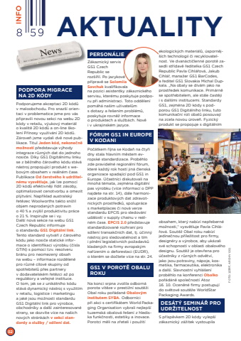 )Podporujeme akceptaci 2D k%u00f3d%u016fv maloobchodu. Pro snaz%u0161%u00ed orientaci v problematice jsme pro v%u00e1s p%u0159ipravili novou sekci na webu 2D k%u00f3dy v retailu, v%u00fdukov%u00fd materi%u00e1l o kvalit%u011b 2D k%u00f3d%u016f a on-line %u0161kolen%u00ed P%u0159%u00ednosy vyu%u017e%u00edv%u00e1n%u00ed 2D k%u00f3d%u016f. Z%u00e1rove%u0148 jsme vydali dv%u011b nov%u00e9 publikace. Titul Jeden k%u00f3d, nekone%u010dn%u011b mo%u017enost%u00ed p%u0159edstavuje v%u00fdhody integrace r%u016fzn%u00fdch dat do jednoho nosi%u010de. D%u00edky GS1 Digit%u00e1ln%u00edmu linku se z b%u011b%u017en%u00e9ho %u010d%u00e1rov%u00e9ho k%u00f3du st%u00e1v%u00e1 n%u00e1stroj propojuj%u00edc%u00ed produkt s webov%u00fdm obsahem v re%u00e1ln%u00e9m %u010dase.Publikace Od %u010derstv%u00e9ho k udr%u017eiteln%u00e9mu vysv%u011btluje, jak lze pomoc%u00ed 2D k%u00f3d%u016f efektivn%u011bji %u0159%u00eddit z%u00e1soby, optimalizovat cenotvorbu a omezit pl%u00fdtv%u00e1n%u00ed. Nap%u0159%u00edklad australsk%u00fd %u0159et%u011bzec Woolworths takto sn%u00ed%u017eil objem neprodan%u00fdch potravino 40 % a zv%u00fd%u0161il produktivitu pr%u00e1ce o 21 %. Inspirujte se i vy.Dal%u0161%u00ed nov%u00e1 sekce na webu GS1 Czech Republic informujeo standardu GS1 Digit%u00e1ln%u00ed link. Tento standard vytv%u00e1%u0159%u00ed z %u010d%u00e1rov%u00e9ho k%u00f3du jako nosi%u010de statick%u00e9 informace o identifikaci v%u00fdrobku (%u010d%u00edsla GTIN) s pomoc%u00ed tzv. resolveru br%u00e1nu pro neomezen%u00fd obsah na webu %u2013 informace rozd%u011blen%u00e9 pro r%u016fzn%u00e9 c%u00edlov%u00e9 skupiny od spot%u0159ebitel%u016f p%u0159es partneryv dodavatelsk%u00e9m %u0159et%u011bzci a%u017e po regul%u00e1tory a ve%u0159ejn%u00e9 instituce. O tom, jak se z unik%u00e1tn%u00edho k%u00f3du st%u00e1v%u00e1 dynamick%u00fd n%u00e1stroj s vyu%u017eit%u00edm v retailu, logistice i marketingua jak%u00e9 jsou mo%u017enosti standardu GS1 Digit%u00e1ln%u00ed link pro v%u00fdrobce, obchodn%u00edky a dal%u0161%u00ed zainteresovan%u00e9 strany, se dozv%u00edte v%u00edce na na%u0161ich nov%u00fdch str%u00e1nk%u00e1ch v sekci standardy a slu%u017eby / sd%u00edlen%u00ed dat.Z%u00e1kaznick%u00fd servisGS1 CzechRepublic seroz%u0161%u00ed%u0159il. Po jazykov%u00e9 p%u0159%u00edprav%u011b se Solomiia Savchuk kvalifikovala na pozici asistentky z%u00e1kaznick%u00e9ho servisu, kter%u00e9mu poskytuje podporu p%u0159i administraci. Toto odd%u011blen%u00ed pom%u00e1h%u00e1 na%u0161im u%u017eivatel%u016fms dotazy a %u0159e%u0161en%u00edm probl%u00e9m%u016f, poskytuje rovn%u011b%u017e informaceo produktech a slu%u017eb%u00e1ch. Nov%u011bi v ukrajinsk%u00e9m jazyce.Po%u010d%u00e1tkem %u0159%u00edjna se Koda%u0148 na %u010dty%u0159i dny stala hlavn%u00edm m%u011bstem evropsk%u00e9 standardizace. Prob%u011bhlo zde pravideln%u00e9 region%u00e1ln%u00ed f%u00f3rum, kter%u00e9 ka%u017ed%u00fd rok host%u00ed jin%u00e1 %u010dlensk%u00e1 organizace spadaj%u00edc%u00ed pod GS1 in Europe. %u00da%u010dastn%u00edci diskutovali na mnoh%u00e1 t%u00e9mata, zejm%u00e9na digit%u00e1ln%u00ed pas v%u00fdrobku (v%u00edce informac%u00ed o DPP najdete na str. 14), d%u00e1le harmonizace produktov%u00fdch dat zdravotnick%u00fdch prost%u0159edk%u016f, spolupr%u00e1ce s marketplaces %u010di nov%u00e1 verze standardu EPCIS pro sledov%u00e1n%u00ed ud%u00e1lost%u00ed v supply chainu v re%u00e1ln%u00e9m %u010dase. EPCIS 2.0 p%u0159edstavuje standardizovan%u00e9 rozhran%u00ed pro sd%u00edlen%u00ed transak%u010dn%u00edch dat, tj. %u00fa%u010dinn%u00fd n%u00e1stroj pro sledovatelnost a t%u00edm i pln%u011bn%u00ed legislativn%u00edch po%u017eadavk%u016f kladen%u00fdch na firmy evropsk%u00fdm na%u0159%u00edzen%u00edm o deforestaci (EUDR),o kter%u00e9m se do%u010dtete v%u00edce na str. 24.Na konci srpna zvolila odborn%u00e1 porota v%u00edt%u011bze v presti%u017en%u00ed sout%u011b%u017ei Obal roku po%u0159%u00e1dan%u00e9 Obalov%u00fdm institutem SYBA. Odborn%u00edcip%u0159i akci s certifik%u00e1tem World Packaging Organisation vybrali nejlep%u0161%u00ed tuzemsk%u00e1 obalov%u00e1 %u0159e%u0161en%u00ed z hlediska funk%u010dnosti, estetiky a inovace. Porotci m%u011bli na z%u0159eteli i pou%u017eit%u00ed ekologick%u00fdch materi%u00e1l%u016f, %u00fasporn%u011bj%u0161%u00edch technologi%u00ed %u010di recyklovatelnost. Ve dvan%u00e1cti%u010dlenn%u00e9 porot%u011b zasedli st%u0159%u00eddav%u011b %u0159editelka GS1 Czech Republic Pavla Cihl%u00e1%u0159ov%u00e1, Jakub Cihl%u00e1%u0159, mana%u017eer GS1 BarCodes,a %u0159editel GS1 Slovakia Michal Dupkala. %u201eNa obaly se d%u00edv%u00e1m jako na prost%u0159edek komunikace. Prim%u00e1rn%u011b se spot%u0159ebitelem, ale st%u00e1le %u010dast%u011bji i s dal%u0161%u00edmi institucemi. Standardy GS1, zejm%u00e9na 2D k%u00f3dy s podporou GS1 Digit%u00e1ln%u00edho linku, tuto komunika%u010dn%u00ed roli obal%u016f posouvaj%u00ed na zcela novou %u00farove%u0148. Fyzick%u00fd produkt se propojuje s digit%u00e1ln%u00edmobsahem, kter%u00fd nab%u00edz%u00ed nep%u0159ebern%u00e9 mo%u017enosti,%u201c vysv%u011btluje Pavla Cihl%u00e1%u0159ov%u00e1. Sout%u011b%u017e Obal roku nab%u00edz%u00ed jedine%u010dnou p%u0159%u00edle%u017eitost pro firmy, design%u00e9ry a v%u00fdrobce, aby uk%u00e1zali sv%u00e9 schopnosti v oblasti obalov%u00e9ho designu. Sout%u011b%u017e je otev%u0159ena pro %u00fa%u010dastn%u00edky z r%u016fzn%u00fdch odv%u011btv%u00ed,jako jsou potraviny, n%u00e1poje, kosmetika, farmaceutika, elektronikaa dal%u0161%u00ed. Slavnostn%u00ed vyhl%u00e1%u0161en%u00ed prob%u011bhlo na konferenci Obalkopo%u0159%u00e1d%u00e1n%u011b spole%u010dnost%u00ed Atoz16. 10. Ocen%u011bn%u00e9 firmy postupuj%u00ed do sv%u011btov%u00e9 sout%u011b%u017ee WorldStar Packaging Awards.S p%u0159%u00edsp%u011bvkem 2D k%u00f3dy vylep%u0161%u00ed z%u00e1kaznick%u00fd z%u00e1%u017eitek vystoupila AKTUALITYFOTO: 123RF, ARCHIV GS1PODPORA MIGRACE NA 2D K%u00d3DYF%u00d3RUM GS1 IN EUROPE V KODANIPERSON%u00c1LIE02DES%u00c1T%u00dd SEMIN%u00c1%u0158 PRO UDR%u017dITELNOSTGS1 V PORO